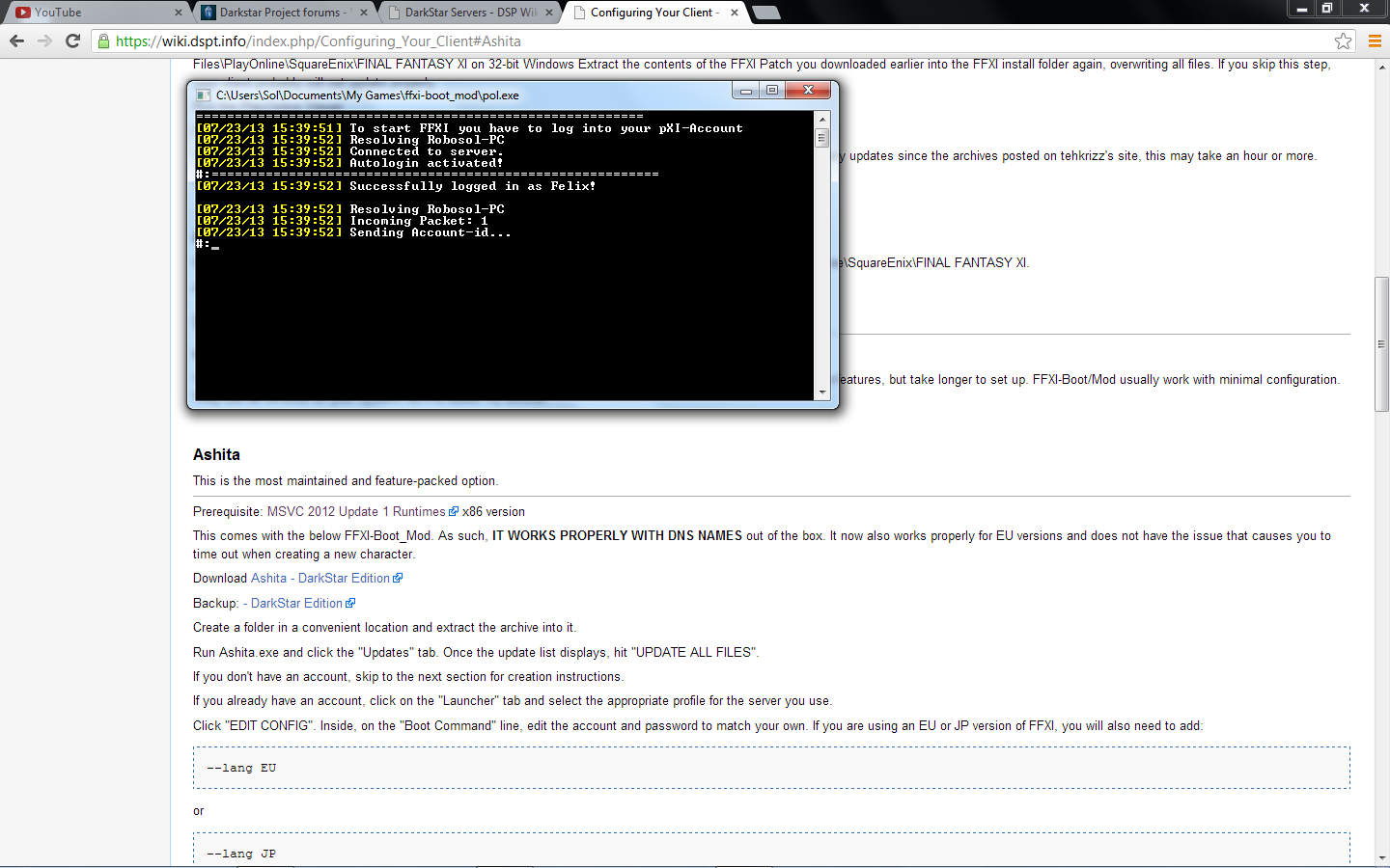 The server isn't on the same machine and I am running the client on admin. I think I may be using he wrong boot file, I'm using ../ffxi-boot_mod pol.exe from when I installed Ashita