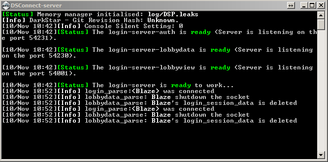 Problem 2: I figure if I can't connect on the localhost, I should try a different approach in case something on the localhost is causing the issue. Let's connect from a different machine. So time to make the firewall exception rules. For the fun of it, I also set the port-forwarding on my router even though it shouldn't be needed on the local network. Lastly, I installed and configured the client on my gaming rig and testing connection to the known working DarkStar servers. Cool. Connect to my server IP and I get the message "Failed to connect to server.." "Closing.."