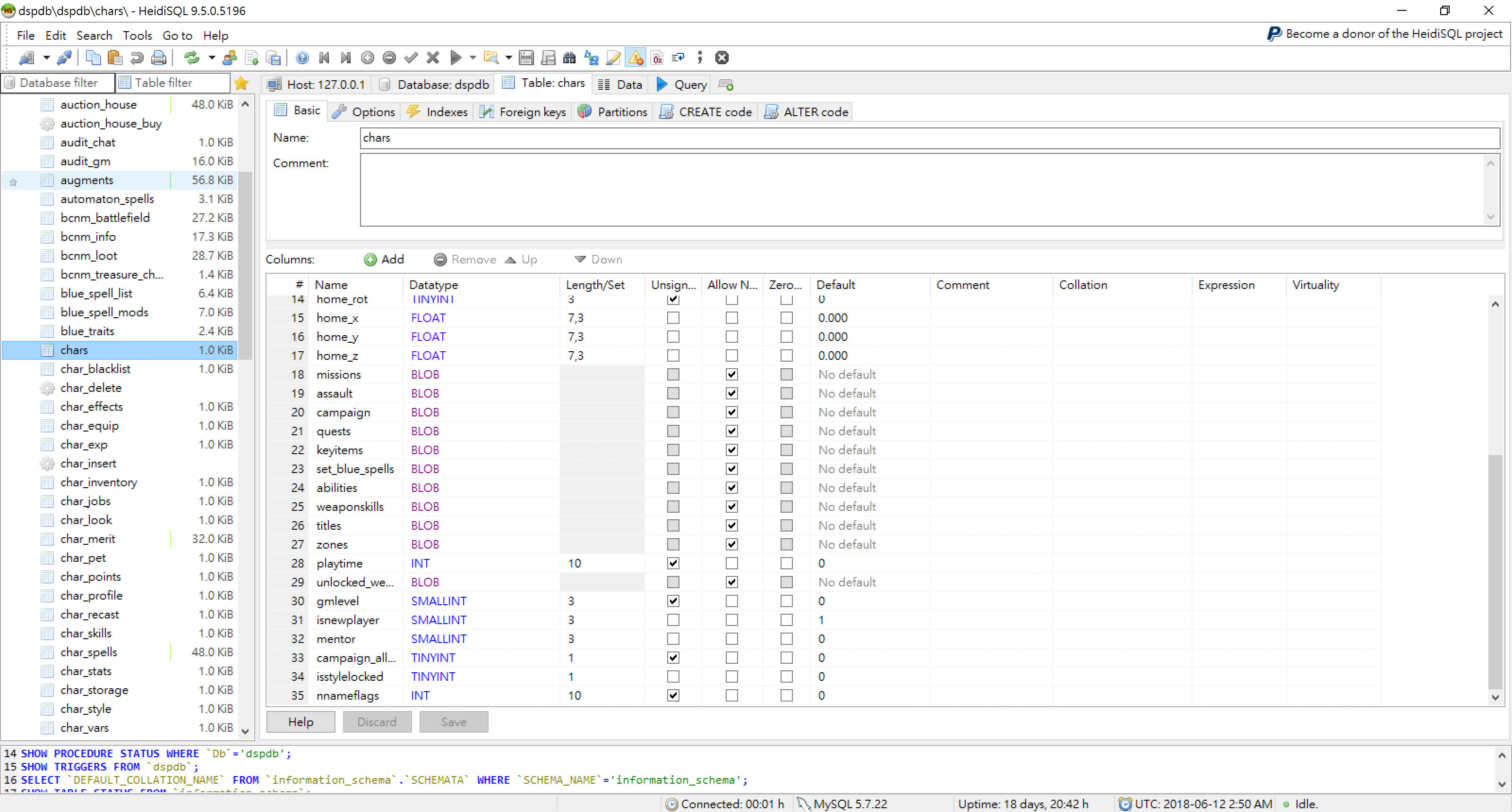 `gmlevel` smallint(3) unsigned NOT NULL DEFAULT '0',