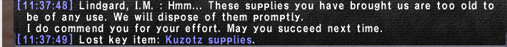 I get this message when delivering the supply to Lindgard in Western Altep. This supply quest is from bastok