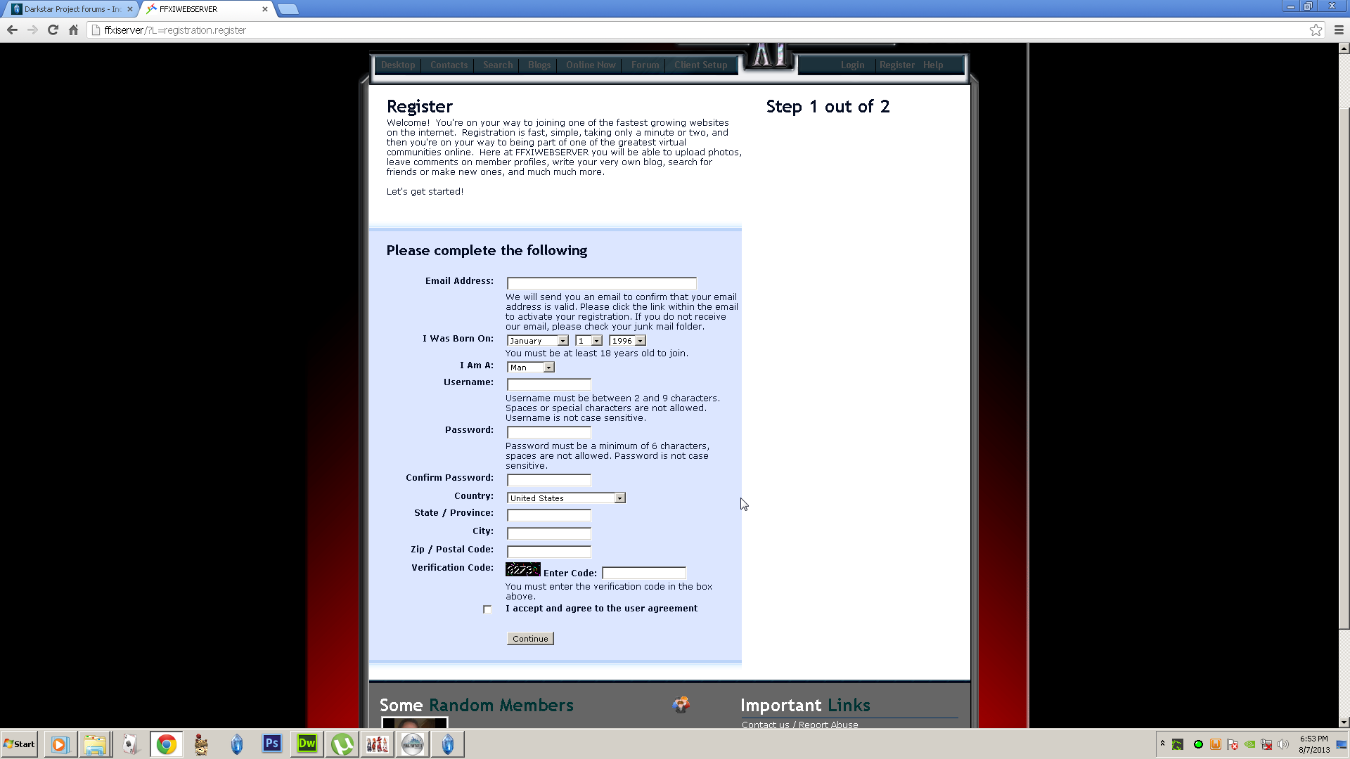 • Registration that will add needed data into accounts table to create workable data for the ashita darkstar client